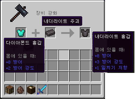 네더라이트로 강화를 하면 능력치와 내구도가 올라갑니다.