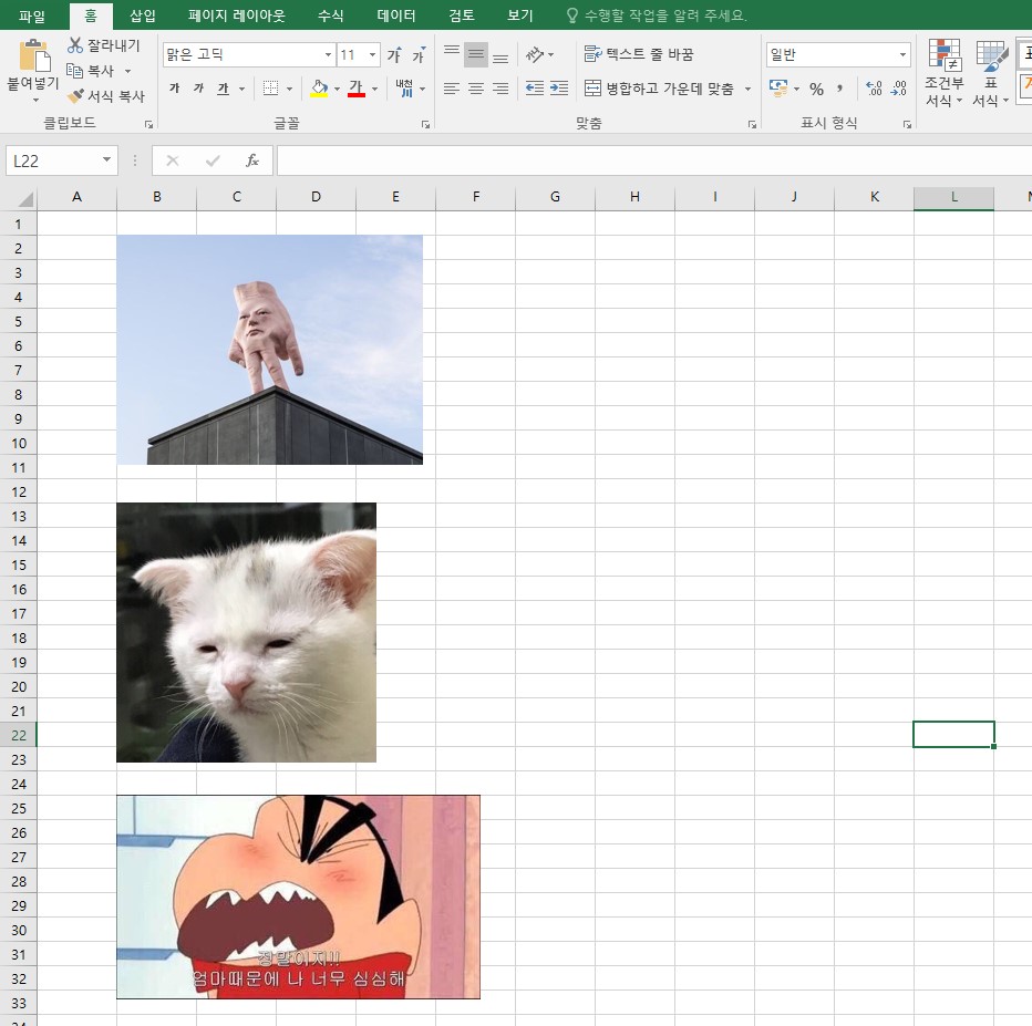 일단은 엑셀에 간단한 이미지 3개를 불러왔습니다.